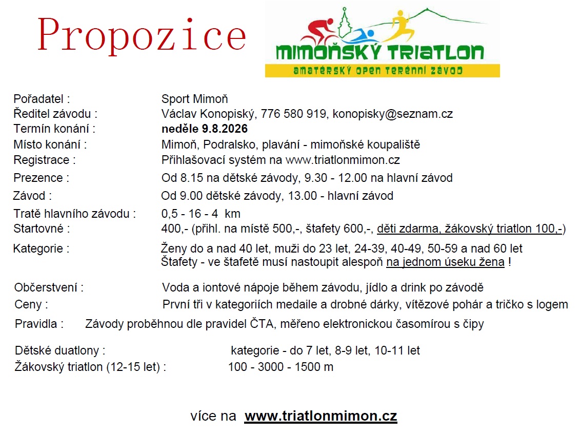Závod proběhne na mimoňském koupališti a okolí Podralska
